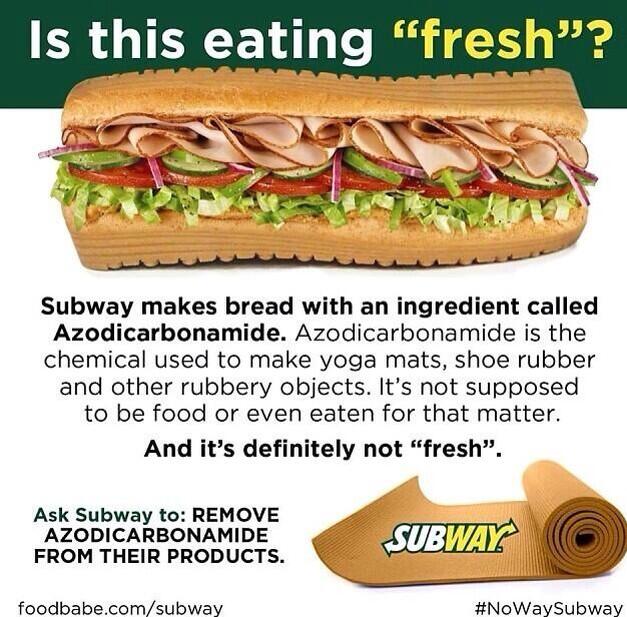 Subway to remove from bread a chemical used to make yoga mats open this photo in gallery.